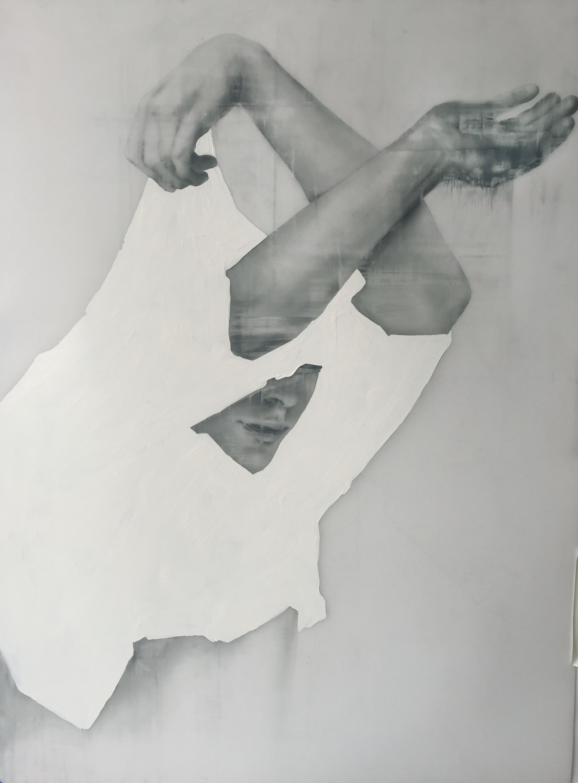 Graphite and Turpentine Oil on double-sided frosted Mylar film with Oil Paint Mounted to Board. 55x42 inches ©2016